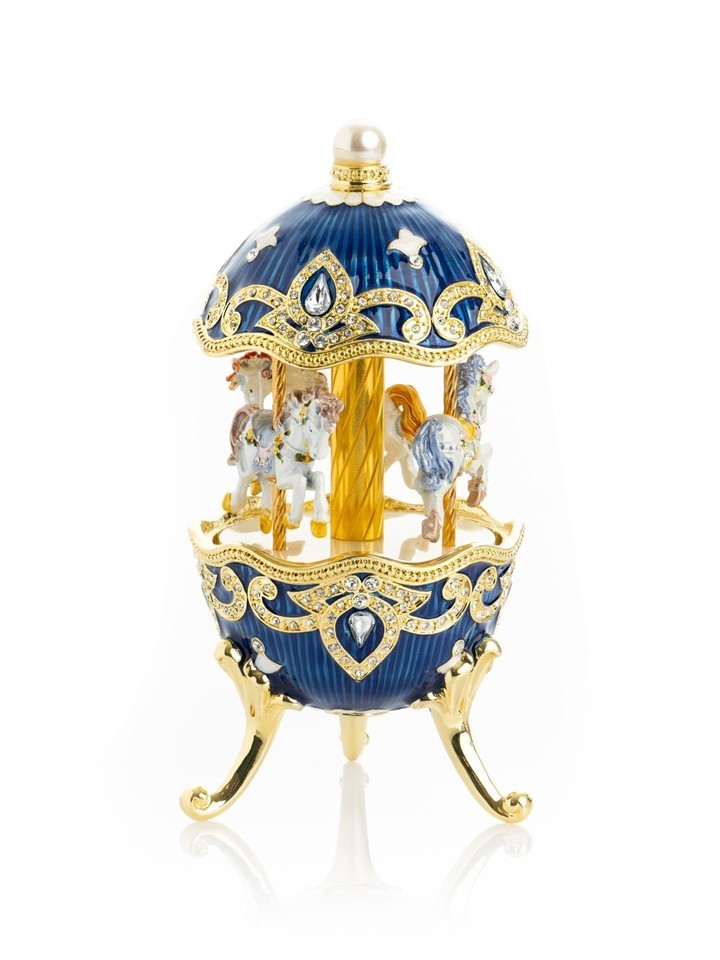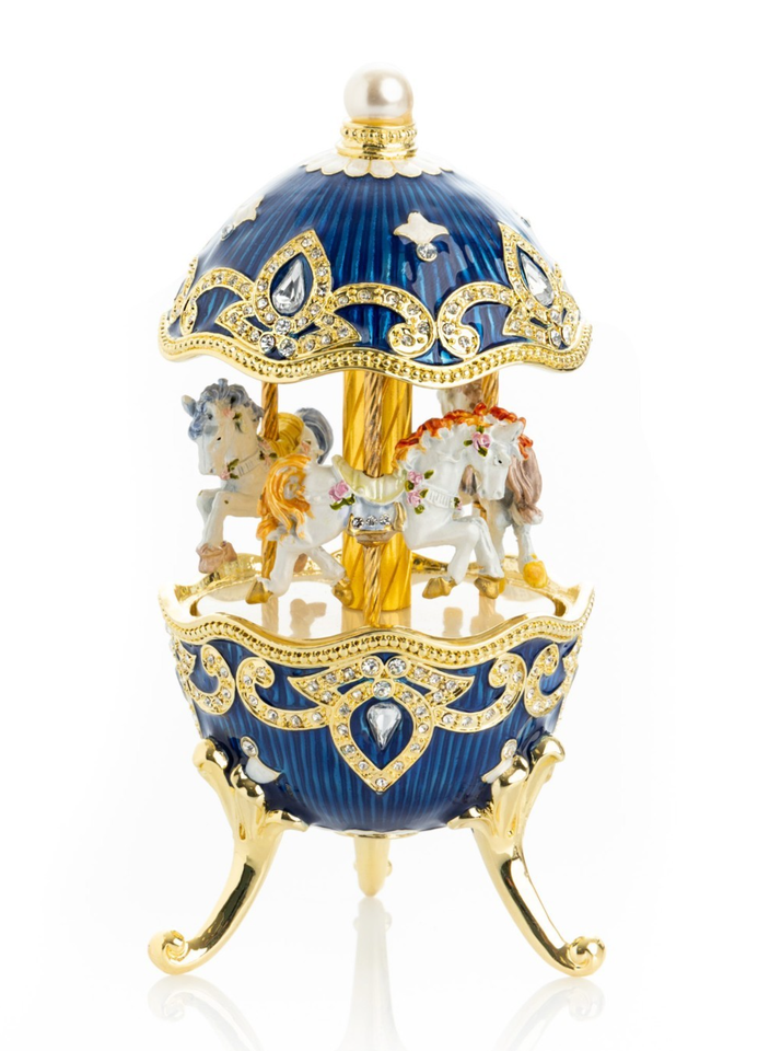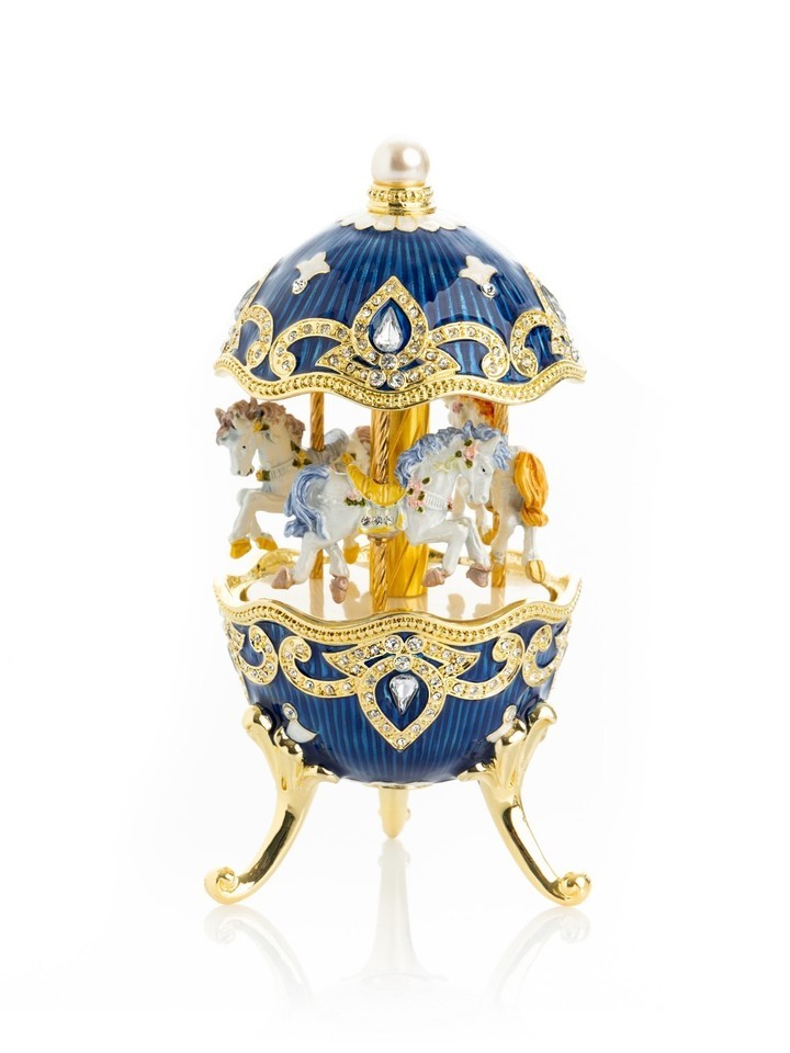 Carrousel de chevaux de musique Keren Kopal bleu Wind up décoré de cristaux...