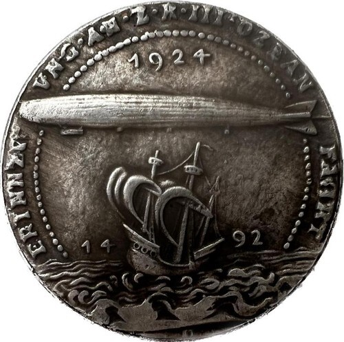 This impressive commemorative medal from 1916 represents a significant historical event highlighting American-German relations during World War I. The obverse features the figure of an armed knight, symbolizing the defense of German interests against the United States. The date, April 20, 1916, refers to a crucial moment in international diplomacy when tensions between these two nations escalated. In the background, the personification of Justice?Justitia?portrays the quest for fairness amid political and military conflicts.