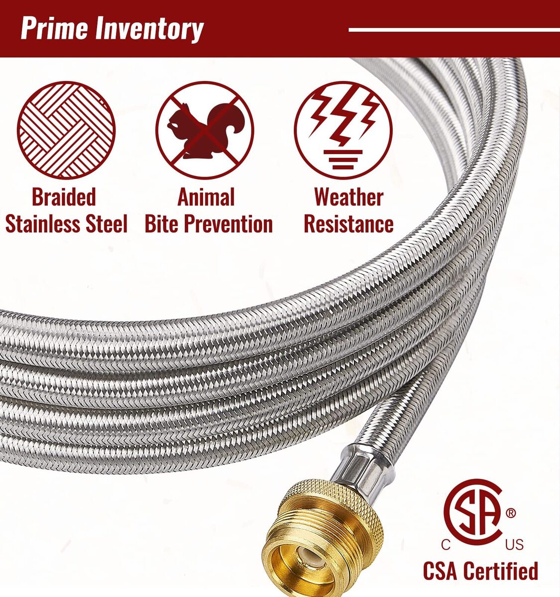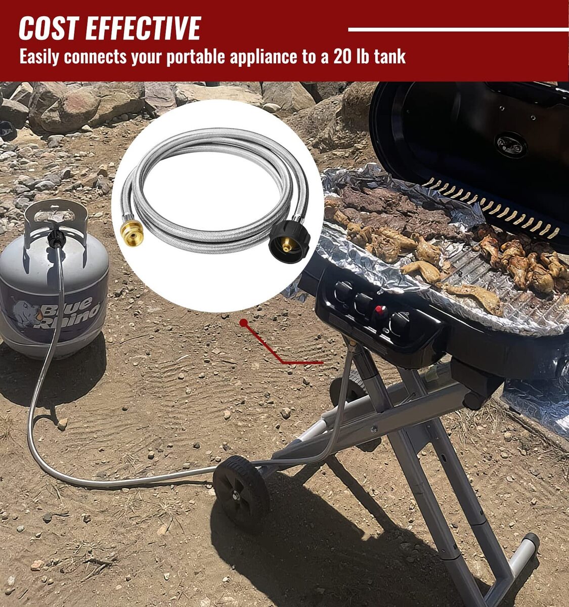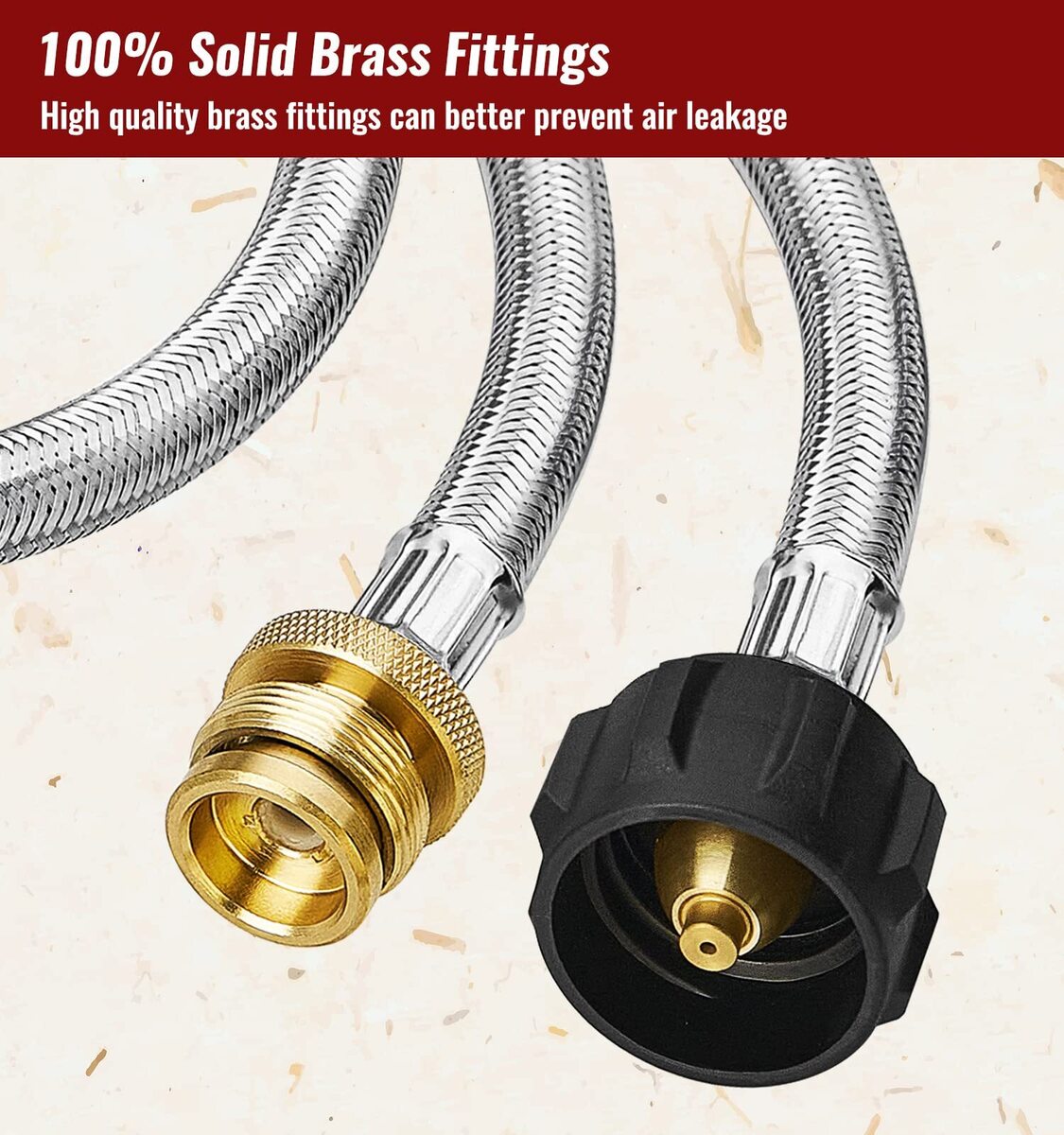 HIGH QUALITY - Stainless steel braid and durable solid brass provide a secure link, enhances the propane hose adapter's resistance to abrasion, tearing, weathering and fire, provide better protection against animal gnawing