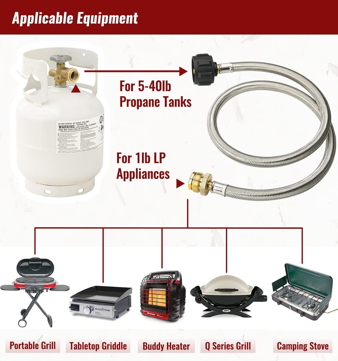 BETTER ADAPTER - With this adapter, you can easily connect 5-40-pound propane tanks to 1-pound portable propane appliance without the need to frequently replace less cost-effective 16.4-ounce/1-pound propane tanks