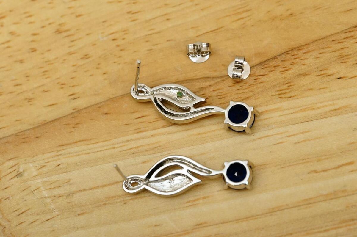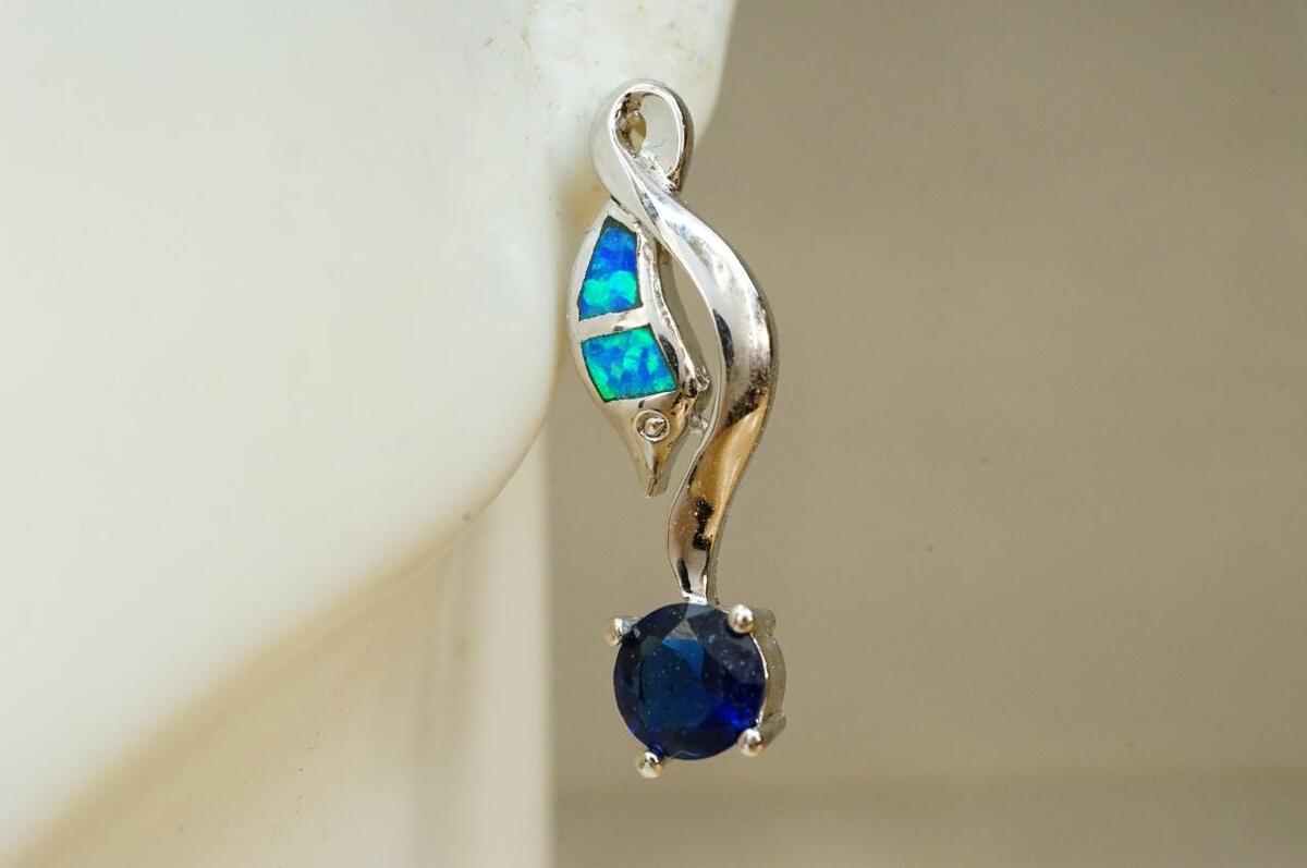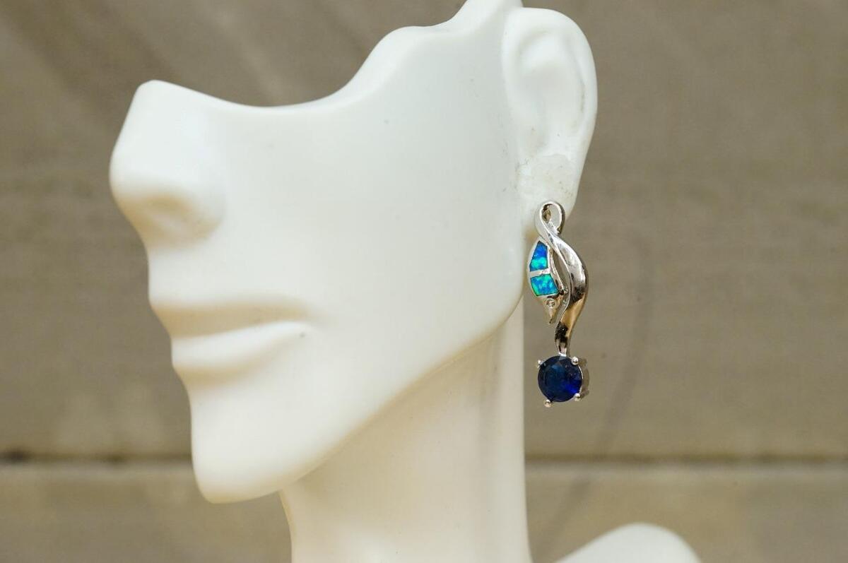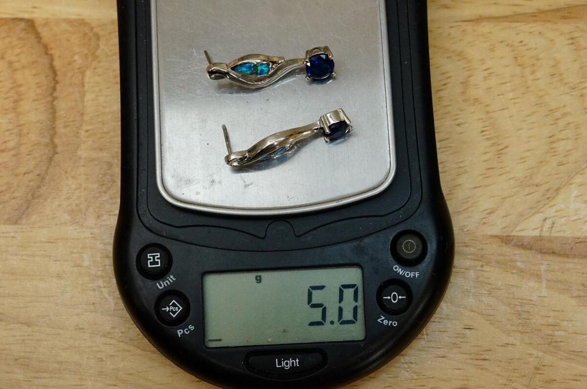 Sterling Silver Jewelry 925 Fire Opal Inlay Faux Blue Sapphire Pierced Earrings