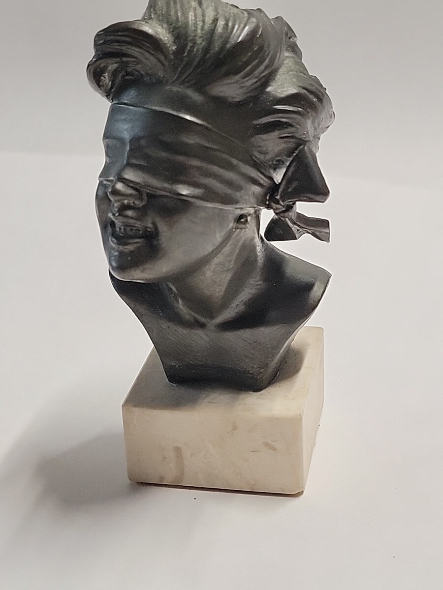 Blindfolded Smiling Lady Sculpture