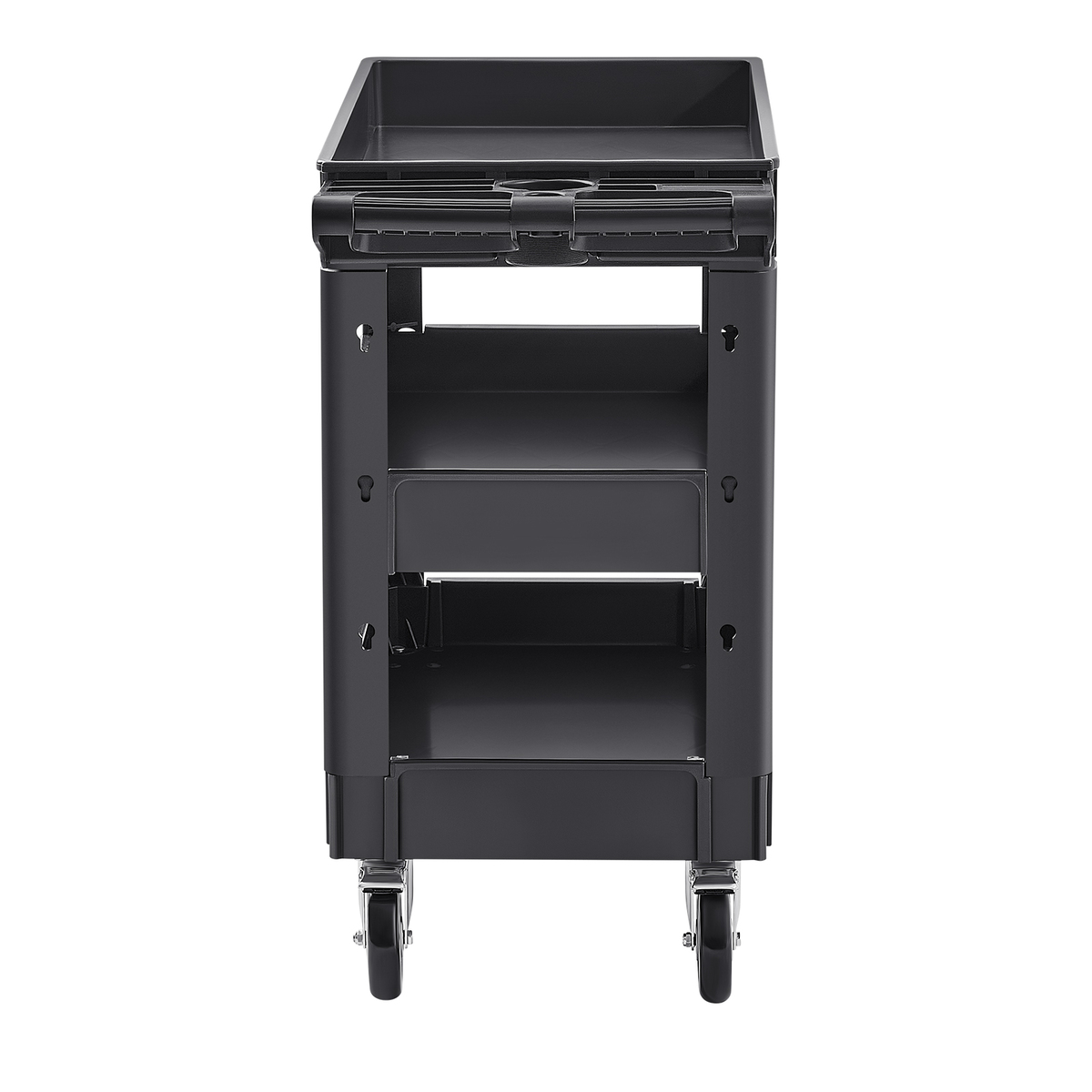Practical Versatile Handle: The top lipped shelf of our service cart has an ergonomic push handle with a built-in storage compartment, for optimal hand placement, safe control, less fatigue operation, and additional storage. Easy-access multipurpose handle can place your cups and other small items, keeping them close at hand.