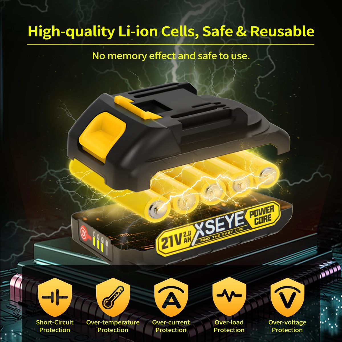 ?LARGE CAPACITY BATTERY PACK?This mini chain saw battery powered is equipped with a 21V 2000mAh rechargeable lithium-ion battery, offering long-lasting performance and easy removal for convenient recharging at any time. The battery also features a power indicator, allowing you to monitor the remaining runtime with ease. Ideal for various cutting tasks, this electric tree trimmer is perfect for wood cutting, garden pruning, pasture upkeep, backyard maintenance, and more.