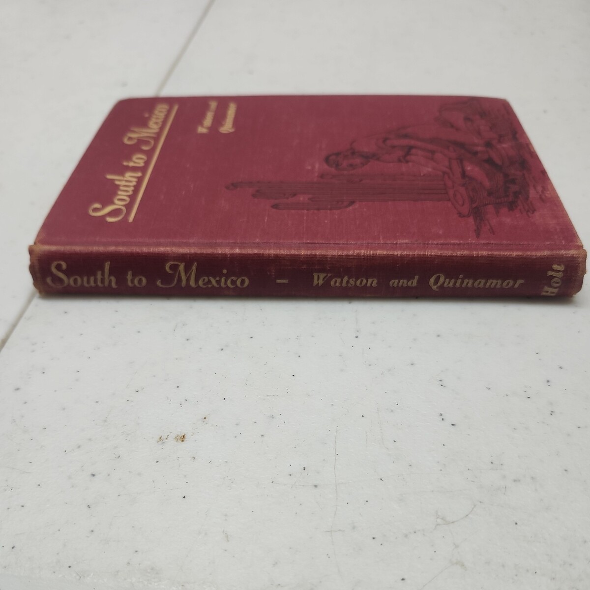 The product is a hardcover book titled "South to Mexico written by Watson and Quinamor. Published by Henry Holt and company in 1939, the book is a language study focused on Central America. This collectible item serves as a valuable resource for those interested in language study and the historical context of Central American regions, making it a unique addition to any antiquarian book collection.