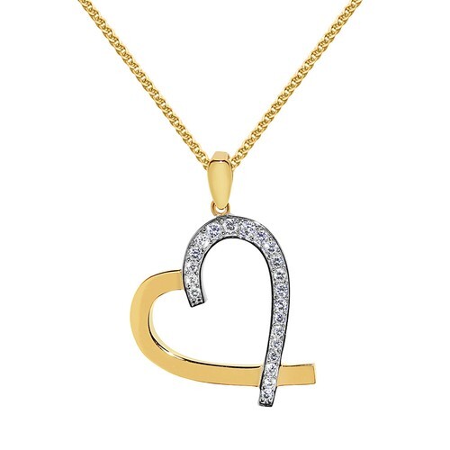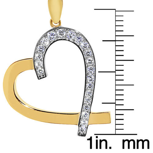Genuine 14k Yellow Gold 0.94" Cubic Zirconia Open Heart Pendant Necklace 16"-22"