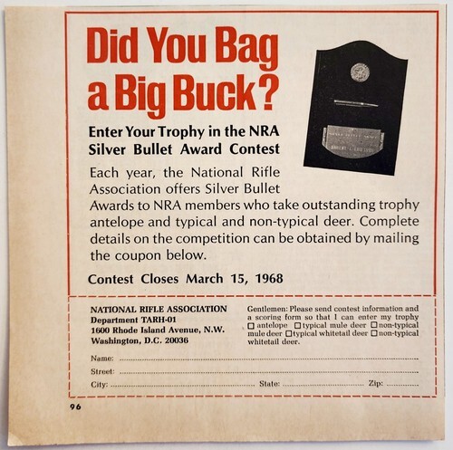 1968 NRA Silver Bullet Award Contest Big Buck Advertisement Hunting E91D