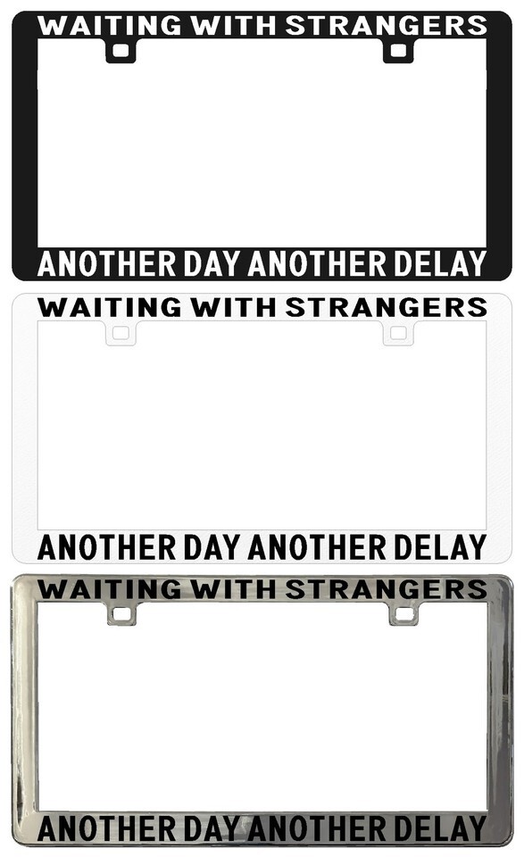 WAITING WITH STRANGERS ANOTHER DAY ANOTHER DELAY. License Plate Frame