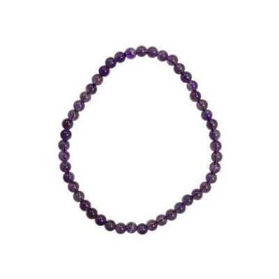 A one size fits most bracelet made from natural stone beads strung on a durable elastic band. Amethyst may assist you in happiness, calming fear, emotional storms, courage, love, peace, addiction, dreams, helps with insomnia and nightmares, and considered the "stone of peace". Elastic. Beads - 4mm - Bracelet unstretched - 2 1/2"