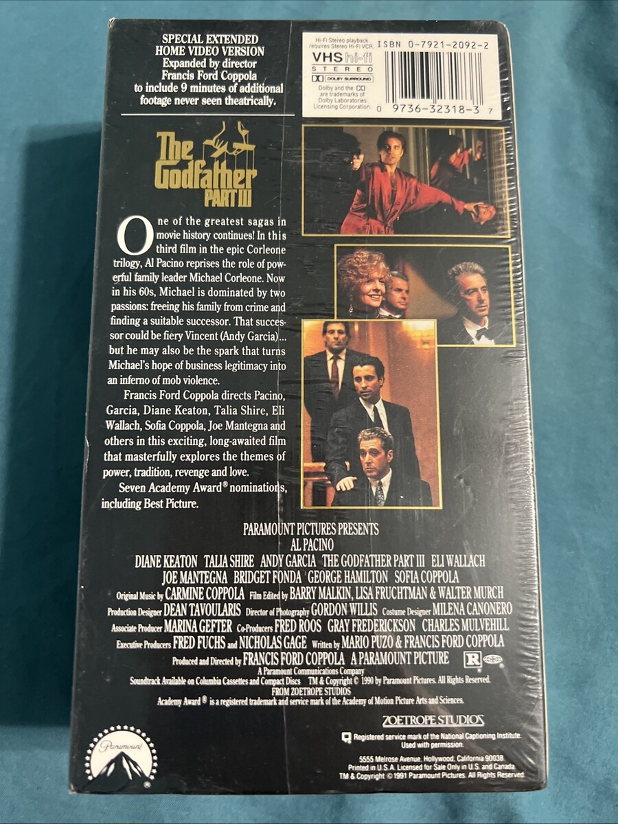 Godfather III (3) (VHS, 1990) Final Directors Cut New Factory Sealed.