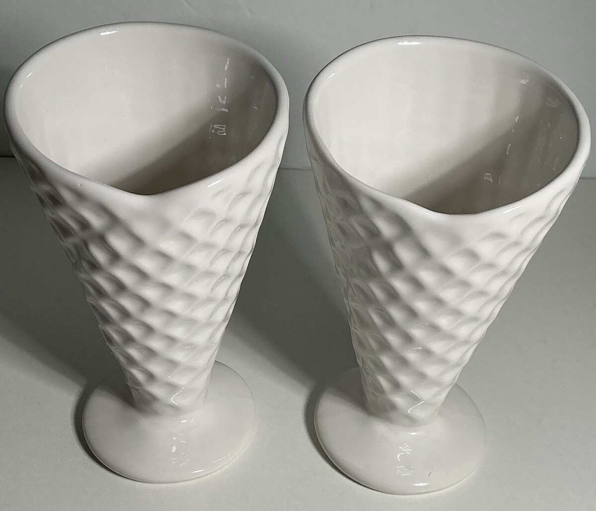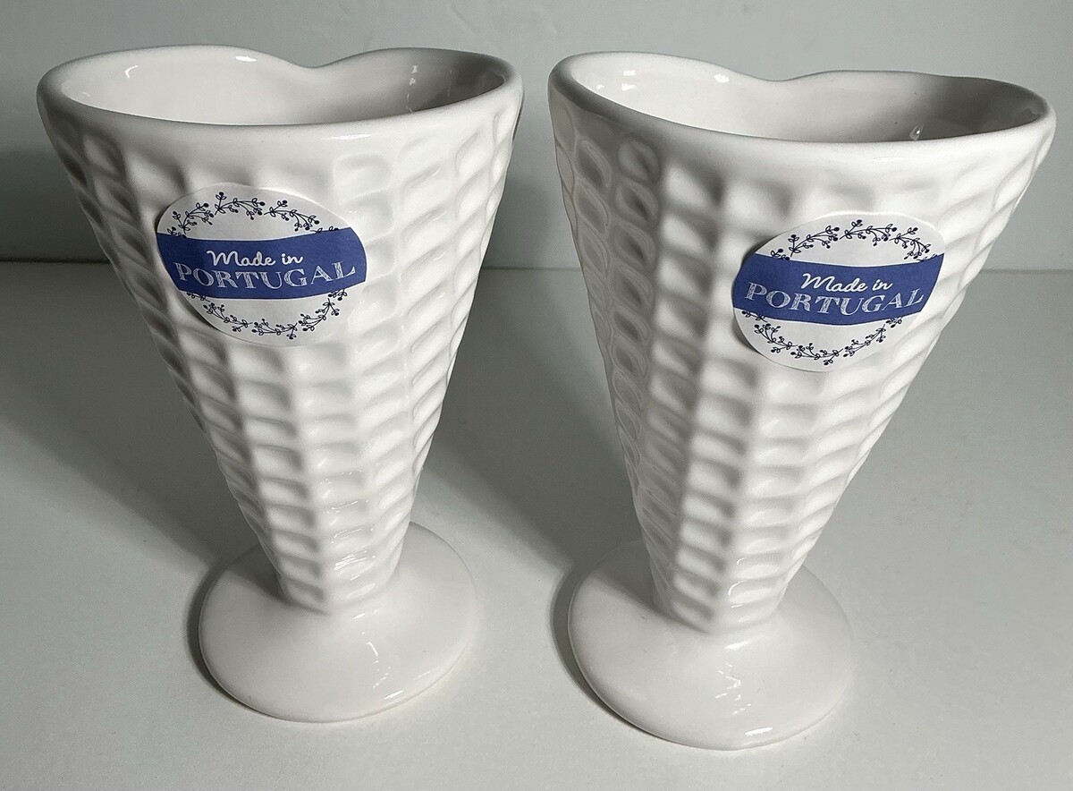 Faiancas Ramos 2 Ceramic ice cream bowls shaped like waffle cones WHITE New