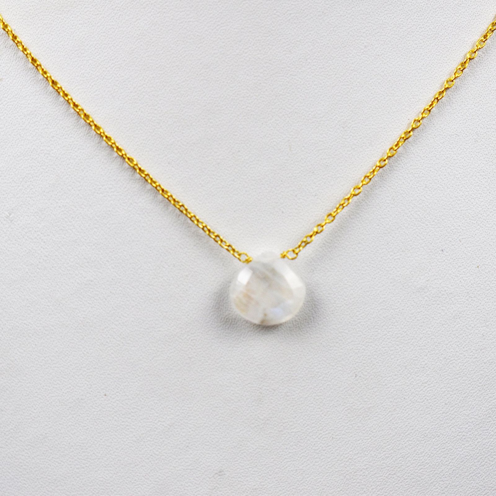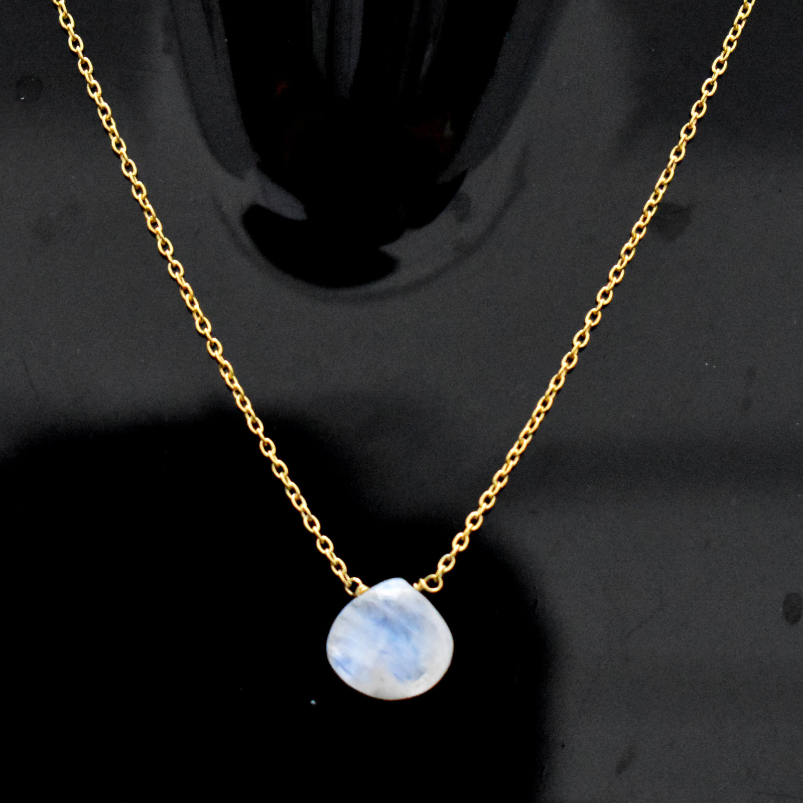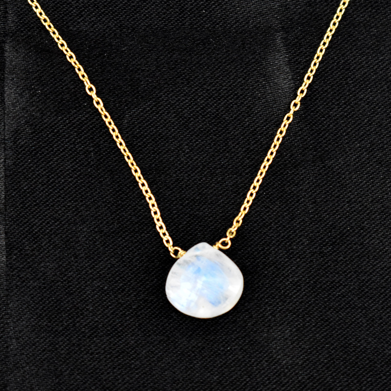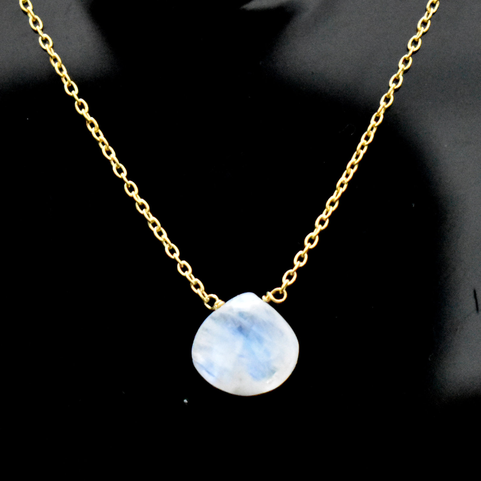 Rainbow Moonstone Necklace-925 Sterling Silver Chain-Heart Briolette Pendant