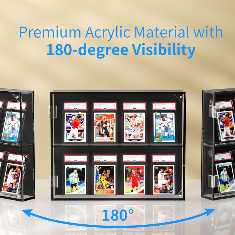 ?Premium Clear View Acrylic? High-quality acrylic material with 180-degree visibility. This baseball card display case is made of high-quality acrylic material, which provides excellent visibility and clarity to showcase your cards and show them off to your friends.
