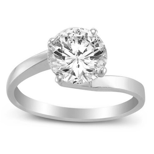 This elegant solitaire engagement ring showcases the beauty of a classic bypass design, crafted in genuine 14k white gold for a luxurious and enduring finish. At its center, a brilliant 6.5 mm round Diamonette stone?renowned for its diamond-like sparkle?shimmers in a secure 4-prong setting, offering the visual brilliance of a 1-carat natural diamond.