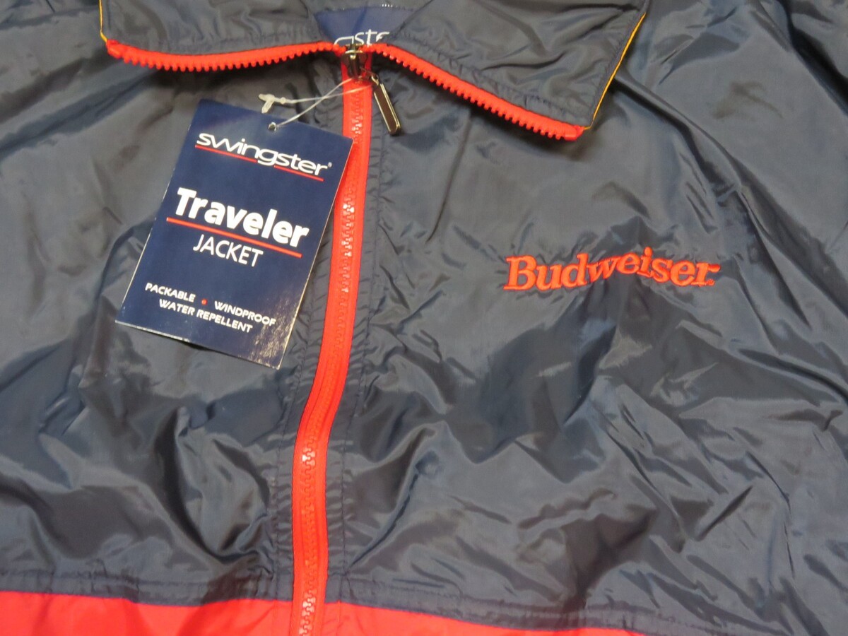 Budweiser Swingster Travel Jacket XL 1990s Red Blue Packable Windproof NEW