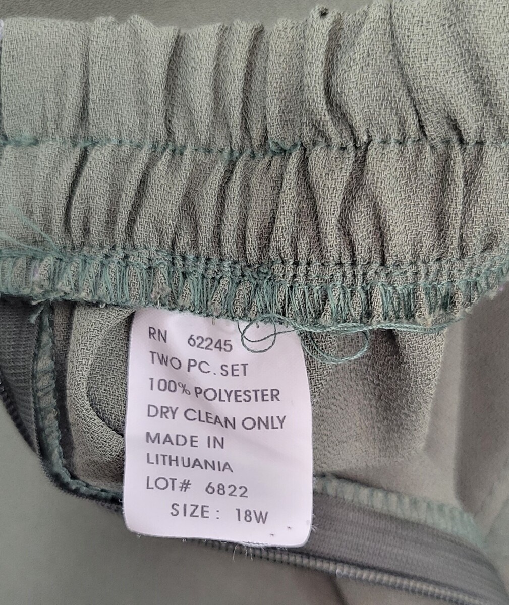 L) Vintage Woman Positive Influence Olive 2 Piece Suit Set Pants Jacket 18W