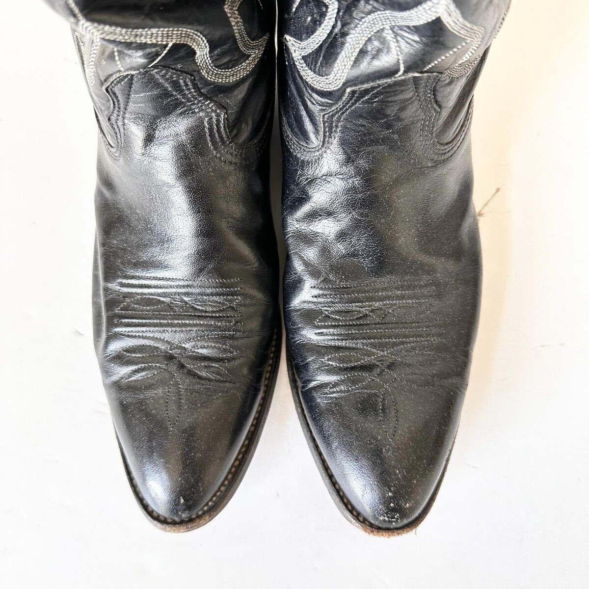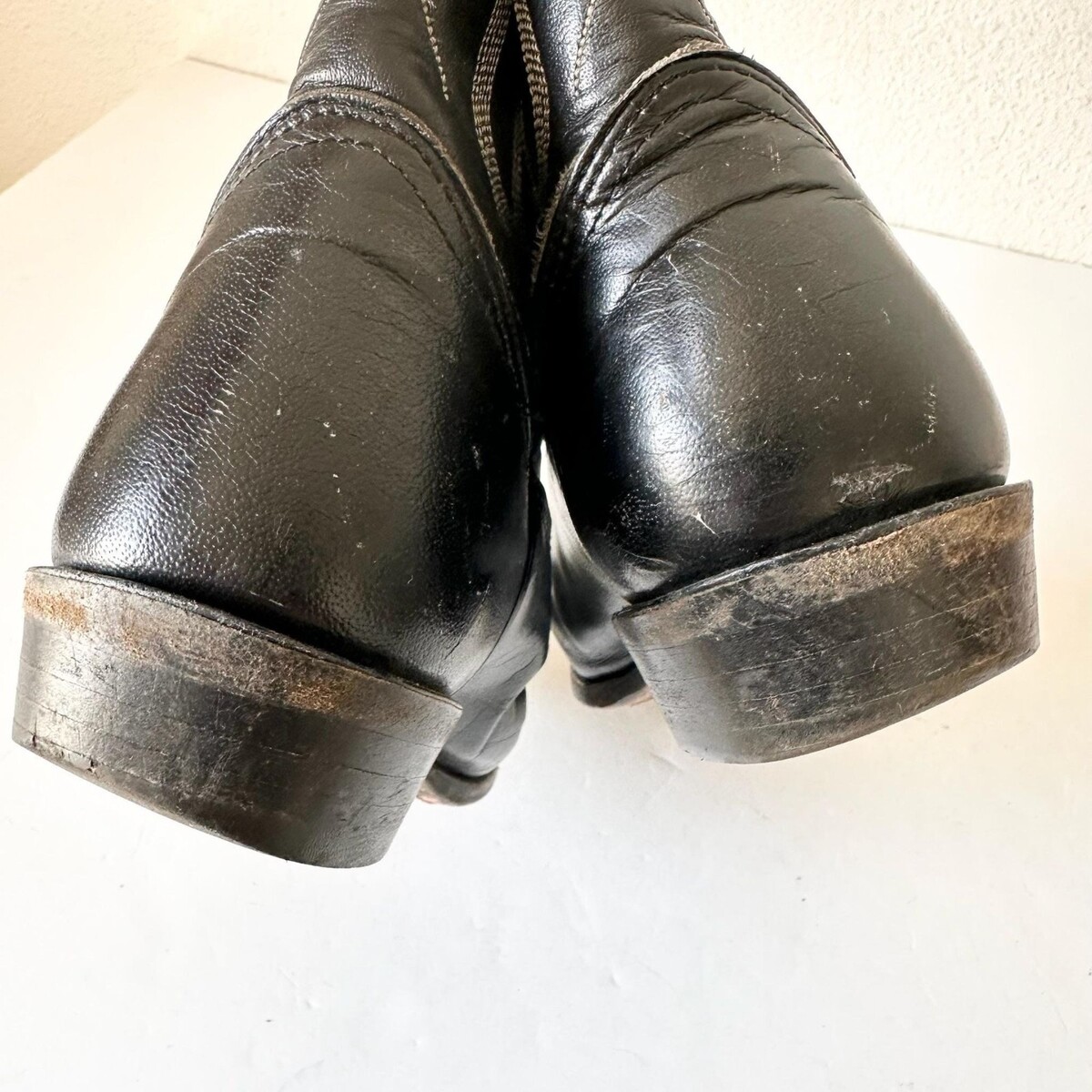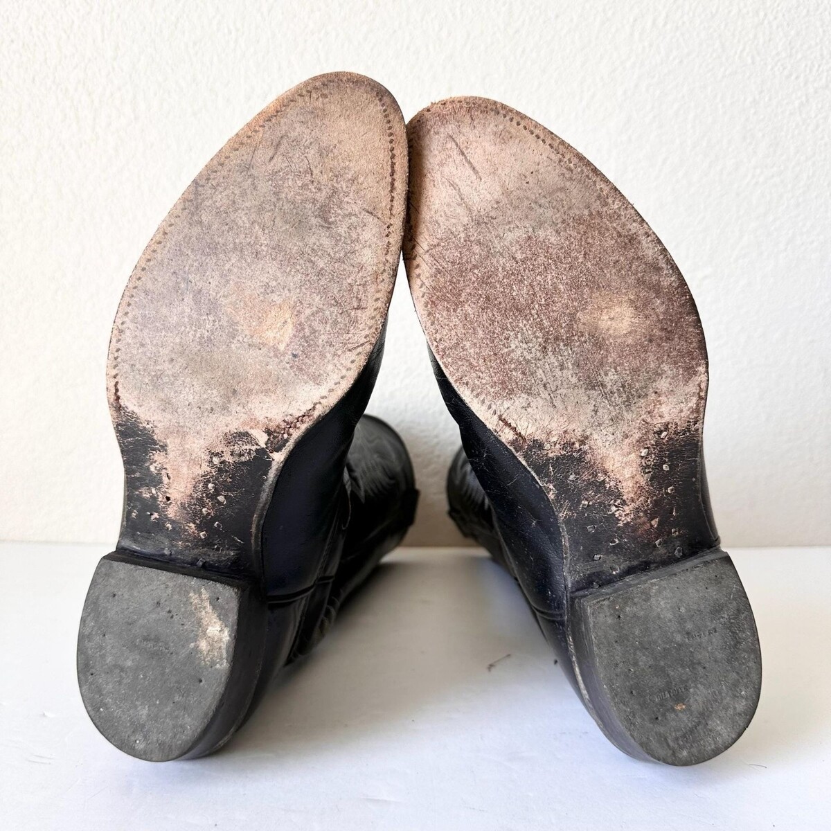 Condition: These boots are in good vintage condition. The soles have lots of life left. The heels are worn more than the soles, which is typical. There is distressing on the boots from age - perfect for their next journey!