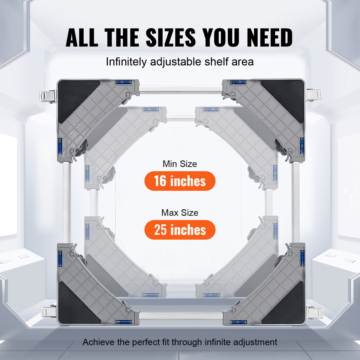 Easy-to-Adjust and Versatile: The VEVOR mini fridge stand features adjustable steel rods. You can customize the length from 16" to 25", and the stand provides minimum height of 4 inches. This incredible adaptability makes it the perfect solution for various appliances and furniture, like washers, dryers, fridges, cabinets, and more.