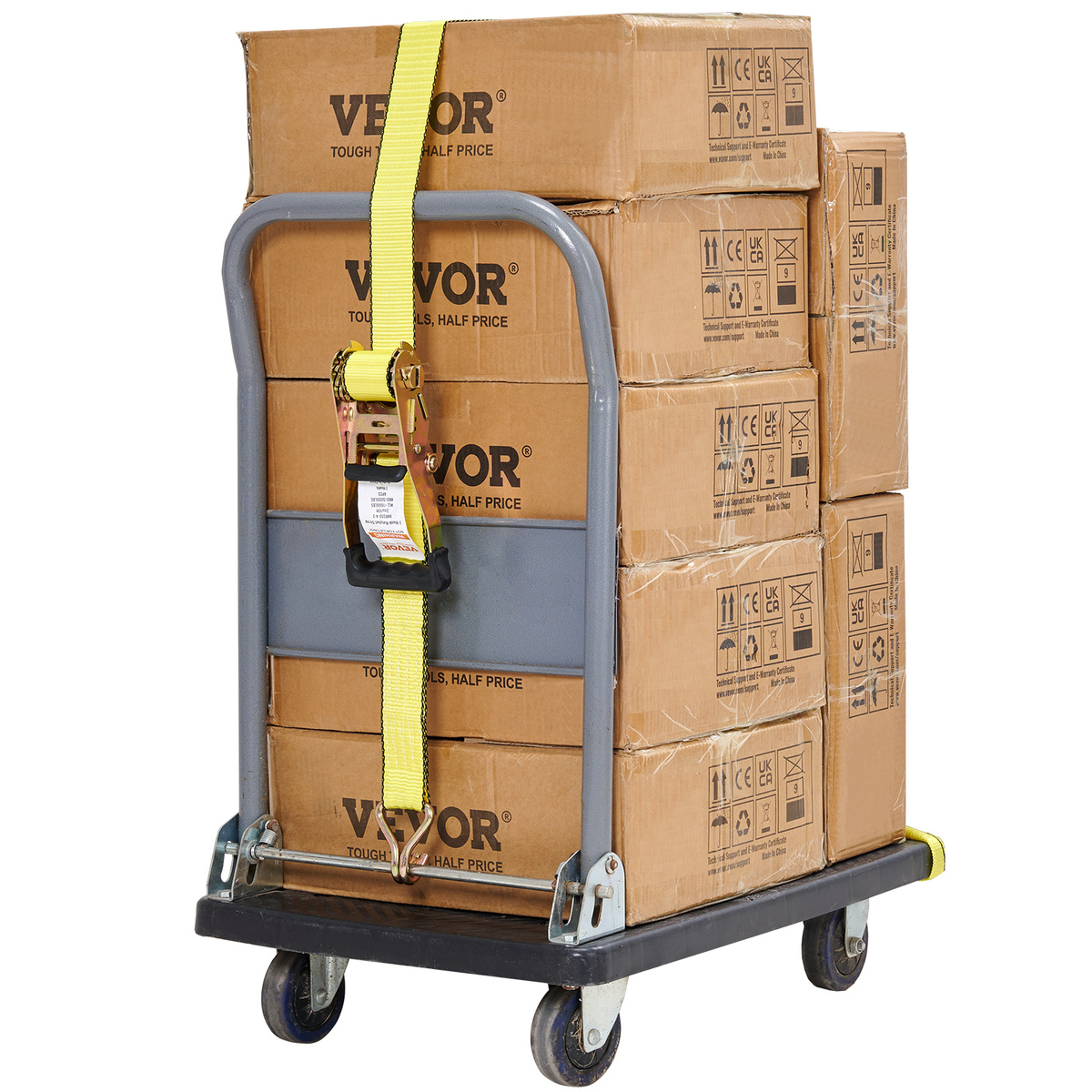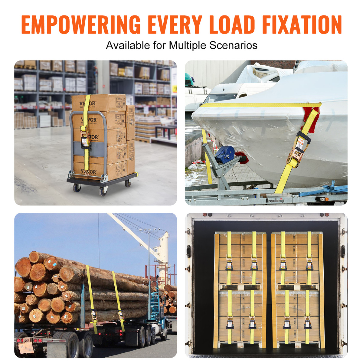 Versatile Application: VEVOR ratchet straps provide durable and reliable security for transporting various small and large objects, including motorcycles, canoes, kayaks, ATVs, boxes, boats, furniture, lawn equipment, heavy machinery, and other cargo via truck beds, trailers, or roof racks.