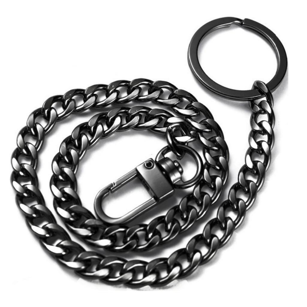 STAINLESS STEEL BIKER KEYCHAIN 16” Black Link Chain Wallet Punk Trucker NEW