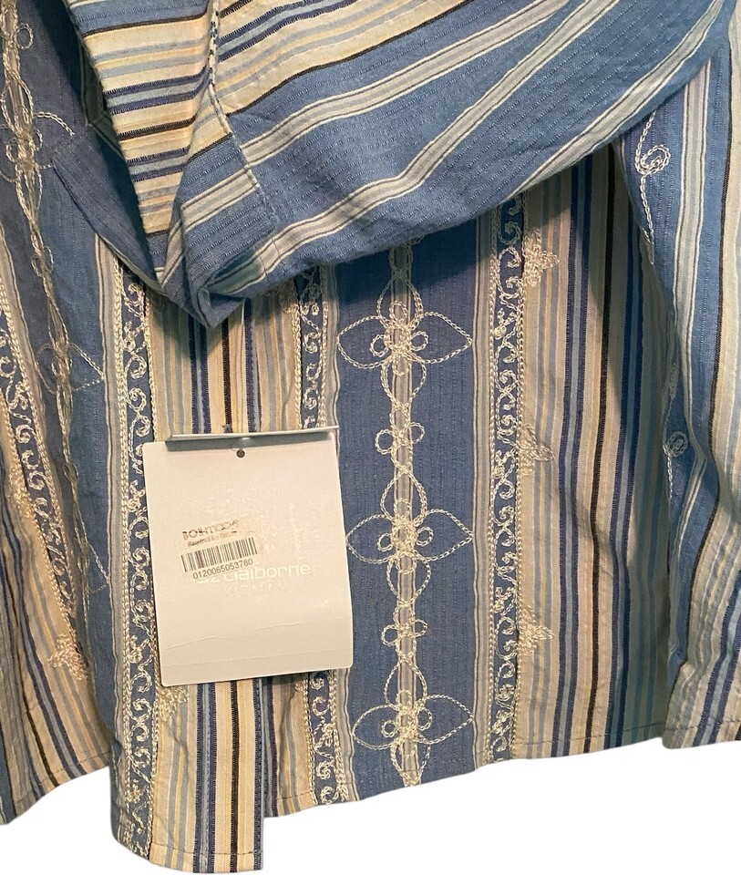 Vintage Liz Claiborne Blouse NWT Size 1X Embroidered Blue Cream Stripe Cotton