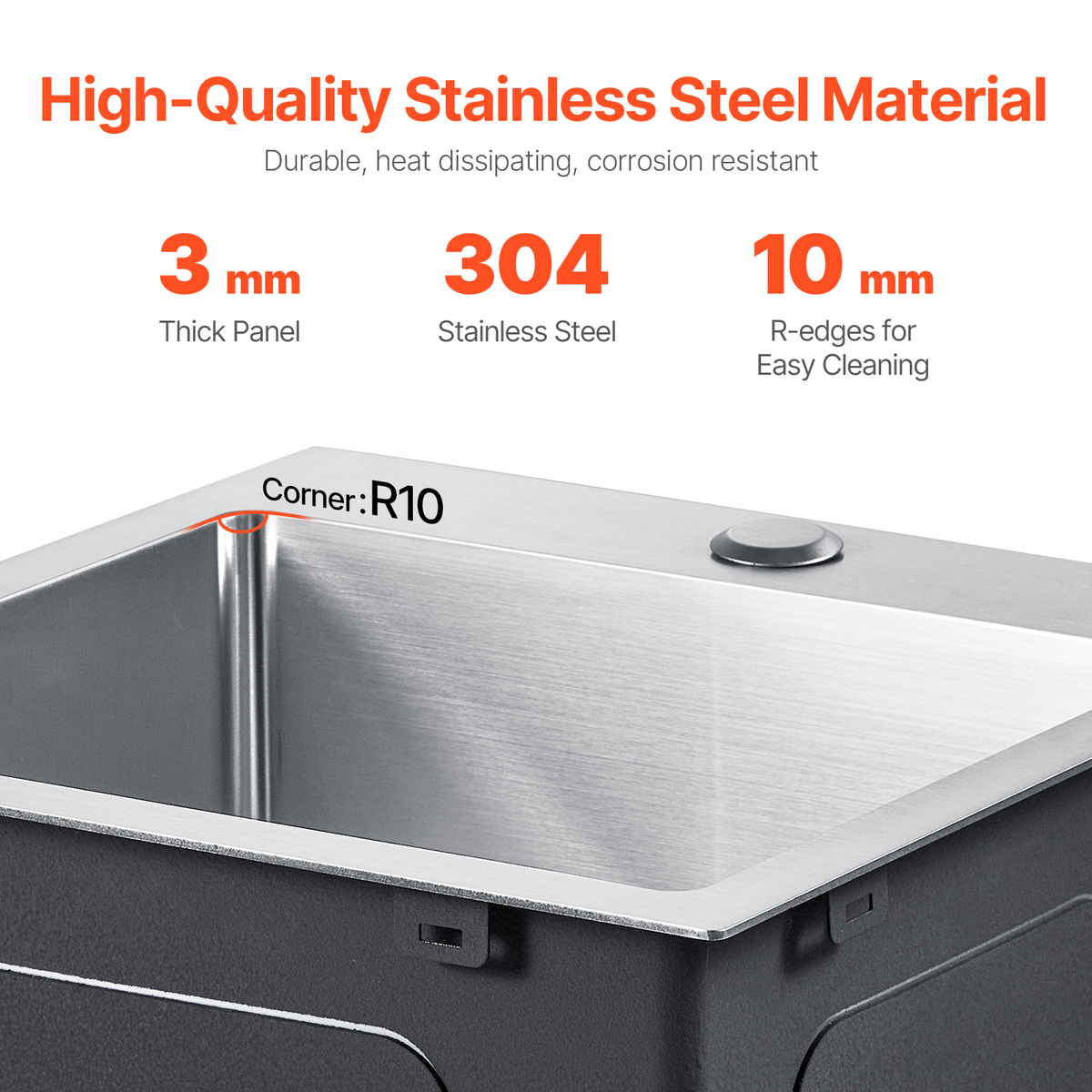 Easy Top-Mount Installation: Our stainless steel bar sink requires no major modifications to your kitchen cabinets or countertop. The ultra-thick 3mm 304 stainless steel edge allows for a secure top-mount installation, and the thick sink body ensures durability.