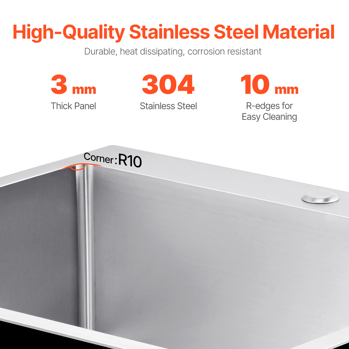 Easy Top-Mount Installation: Our stainless steel bar sink requires no major modifications to your kitchen cabinets or countertop. The ultra-thick 3mm 304 stainless steel edge allows for a secure top-mount installation, and the thick sink body ensures durability.