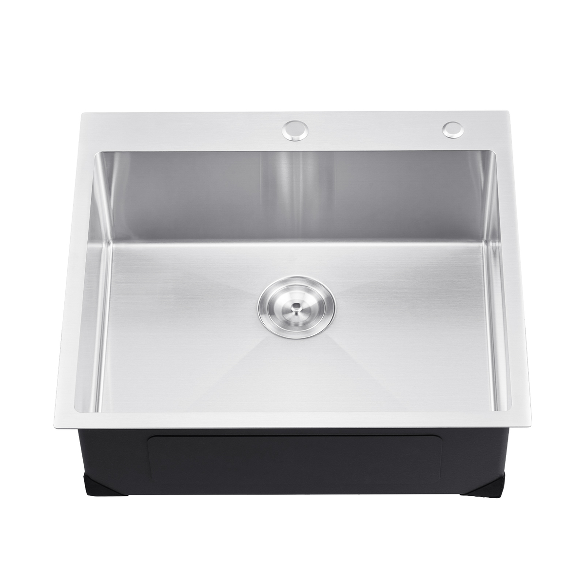 Large Capacity: Sink External Dimension: 25x22 inch. Internal Dimension: 24x21 inch. Bowl depth: 9 inch. This kitchen drop-in basin is deep enough to accommodate cups, pots, and baking trays, meeting various washing needs.