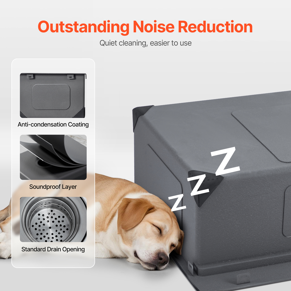 Soundproofing and Anti-Condensation Layer: This household dishwasher sink is ultra-quiet, equipped with thicker, softer rubber noise-dampening pads. The soundproof pads and base coat insulation materials reduce noise, ensuring excellent sound reduction and quietness, while the thick base coat prevents condensation.