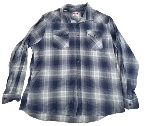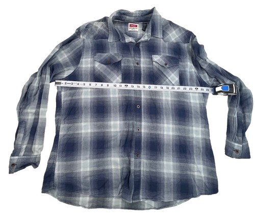 Wrangler Men's Western Flannel Shirt Size 2XL Plaid Blue Long Sleeve Cotton