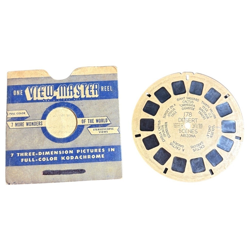 Explore Arizona's desert landscapes with this vintage View-Master reel featuring full-color Kodachrome 3D images. A nostalgic piece for collectors and enthusiasts.