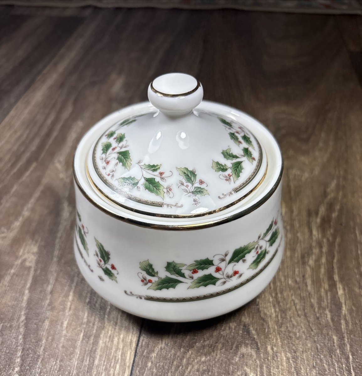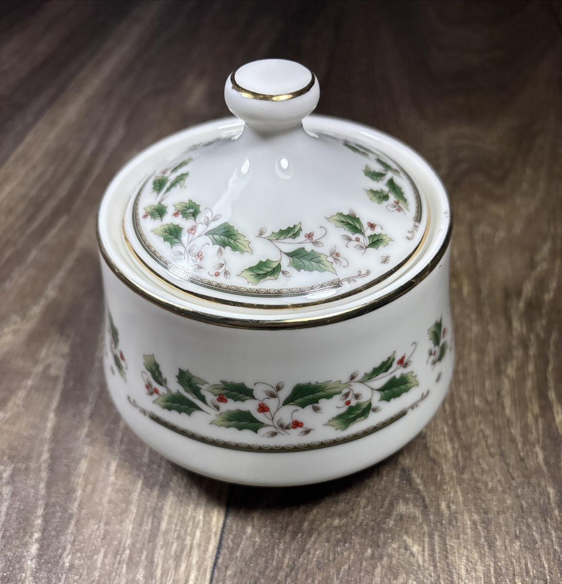 Vintage Royal Limited Holly Holiday Porcelain Sugar Bowl With Lid Made In Japan