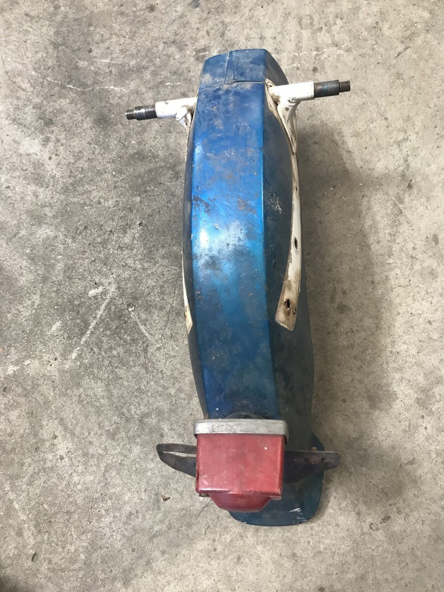 Honda Dream CA72/77 Rear Fender with License Plate Bracket Tail Light. The motorcycle it was removed from had a damaged frame. When removing the fender the rear of the frame was cut off leaving part of the frame still attached. to the fender. ( see picture). Red arrow points to cut portion of the frame. Blue arrow points to the fender Yellow circles the joint between the two.The fender is undamaged and complete. The license plate bracket and tail light are included. The lens of the tail light is slightly damaged but usable.