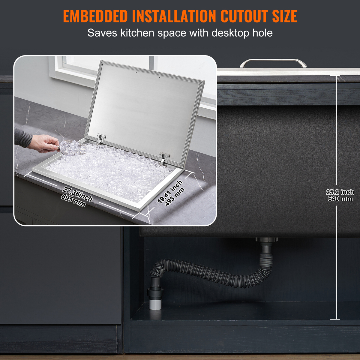 VEVOR Drop in Ice Chest Stainless Steel 28x20x17in 114qt Hinged Cover for Wine