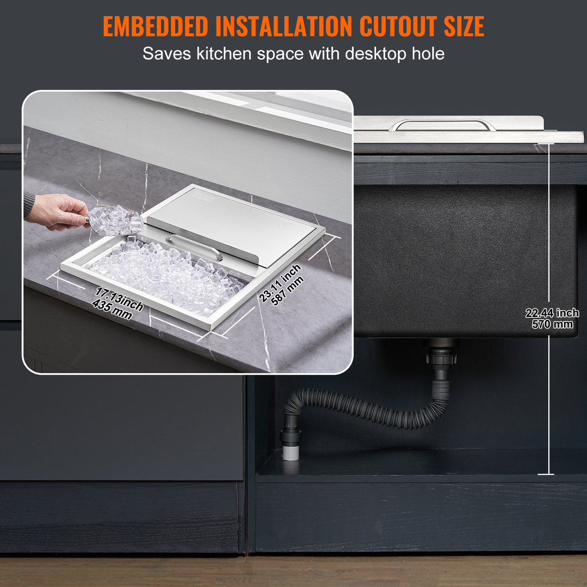 Embedded Installation: The ice storage chest can be installed in beverage stores, hotels, or bar counters. Also suitable for indoor and outdoor kitchen counters. The embedded installation saves significant space.