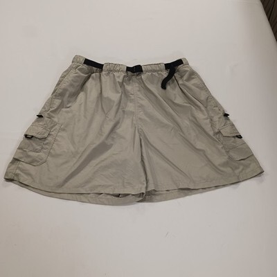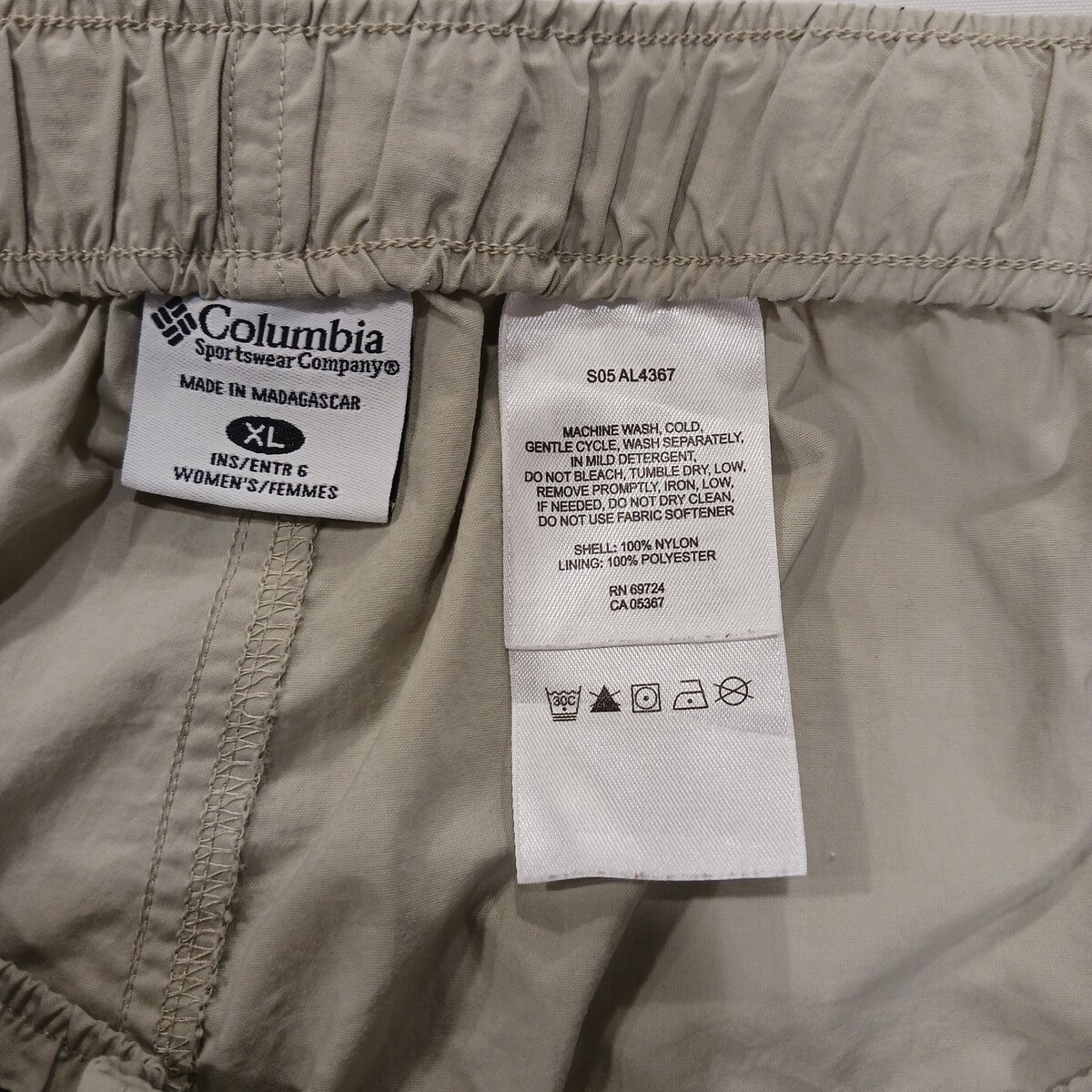 The Columbia AL4367 Women's Tan Sandy River Shorts in Size XL (306) are versatile activewear shorts perfect for casual occasions during the warmer seasons. These belted shorts feature a high rise and a flat front design with a pull-on closure for easy wear. Made of 100% nylon fabric with a dark wash, these solid beige shorts have a 6-inch inseam and slash pockets for added convenience. Ideal for outdoor activities like walking and hiking, these Columbia shorts combine style and functionality for the modern woman on the go.