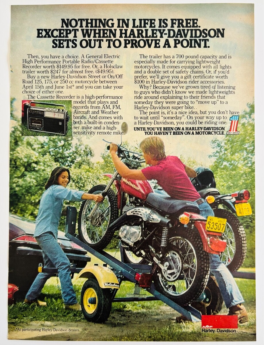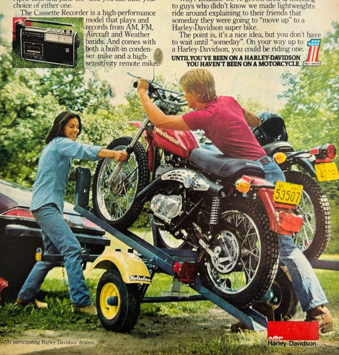 1977 Harley Davidson Motorcycle Advertisement GE Portable Radio Cassette DWF15