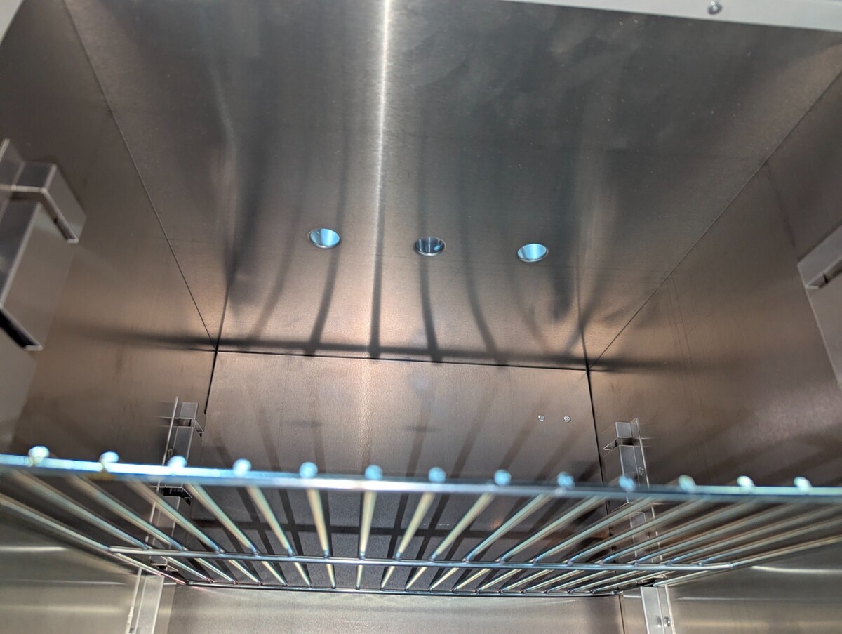 Supplied with two adjustable tip-proof zinc plated steel shelves, thermometer (spirit filled)