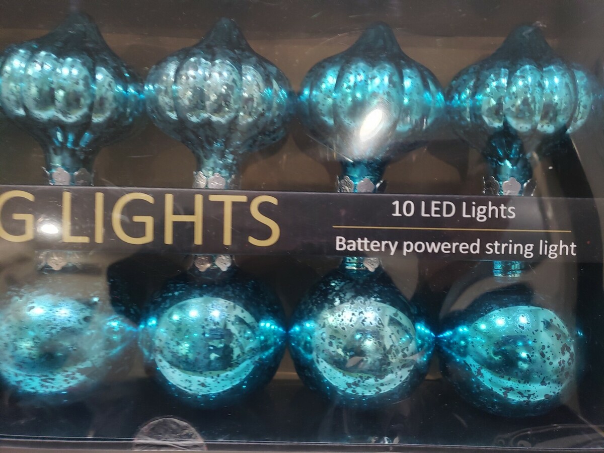 Christmas BATTERY OPERATED Turquoise Ornaments String Lights NEW
