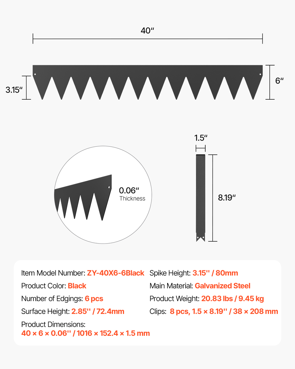 What Youโll Receive: The set includes 6 metal yard edging, 1 pair of installation glove, 8 clips and 1 instruction manual. The extended spike design makes it easier to drive the pieces into the ground, reducing installation effort. Spend more time enjoying your outdoor space and less time on maintenance!