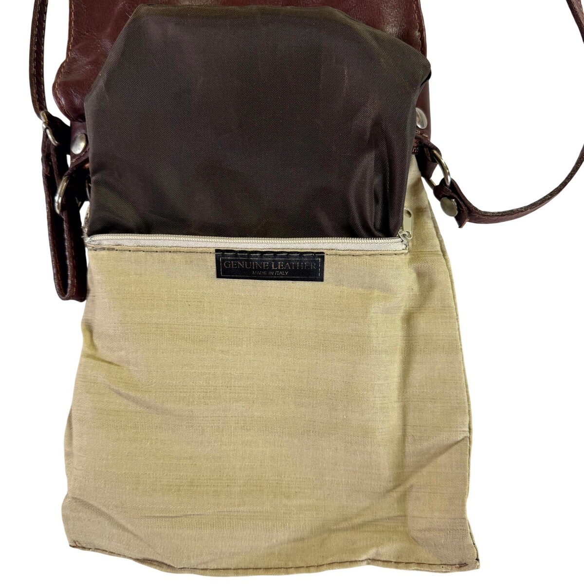 Vera Pelle Italian Leather Crossbody Bag Two-Tone Brown Tan Small Adjustable