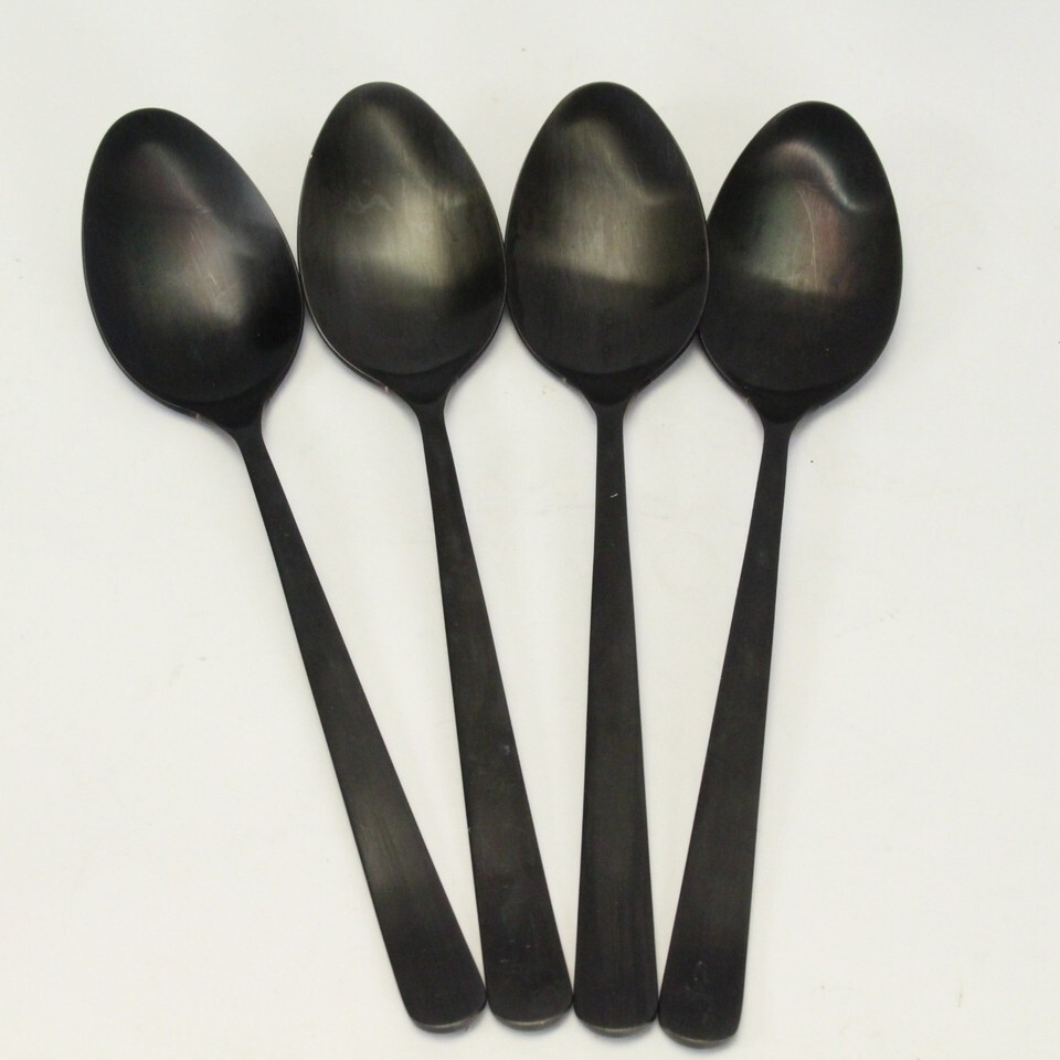 Herdmar Oslo Black Oval Soup Spoons Matte 8 3/8" 18/10 Lot of 4