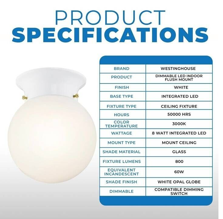 Ceiling Fixture LED Lamp, Flush-Mount 620-Lumens 3000K White, Westinghouse 61070