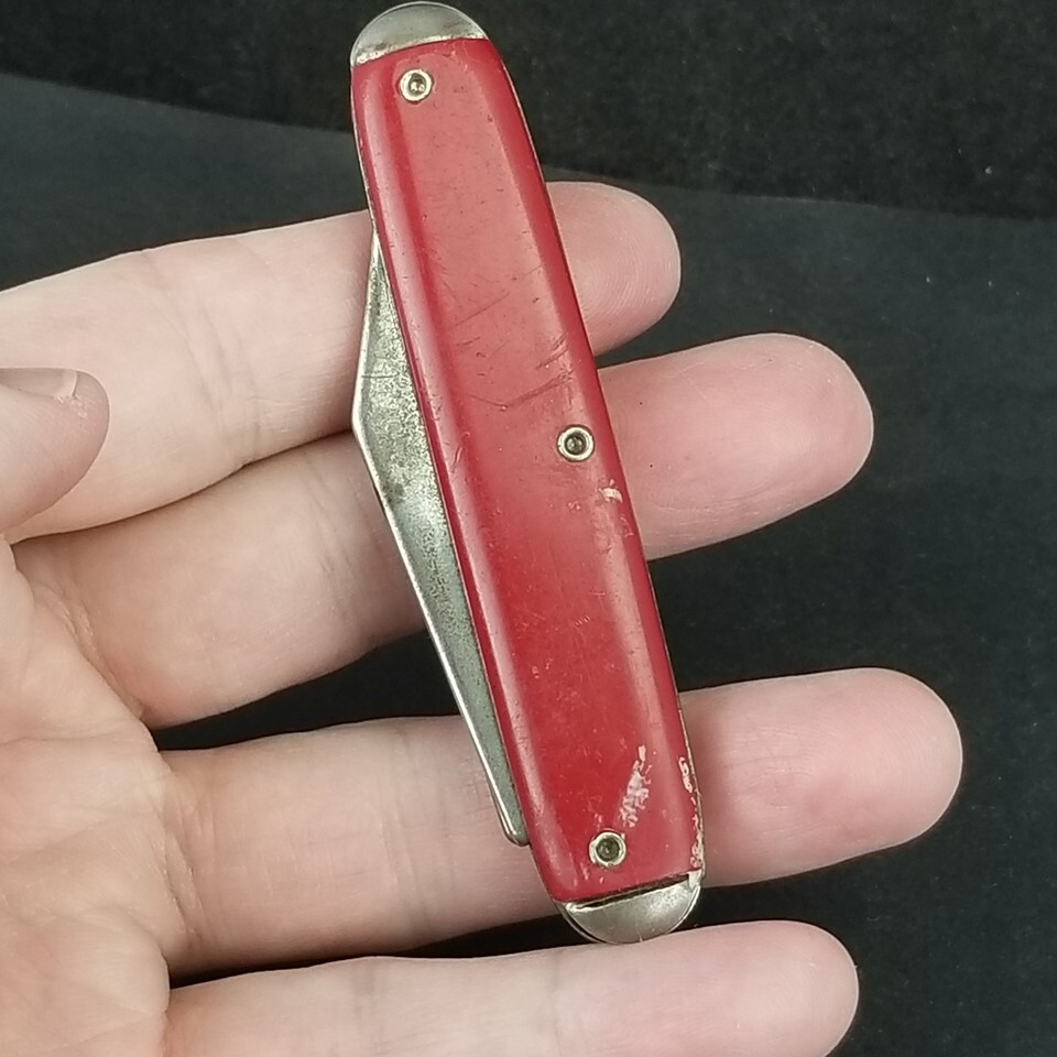 rare pocket knife vintage MADE IN USA two blade 1950's red MYSTERY KNIFE