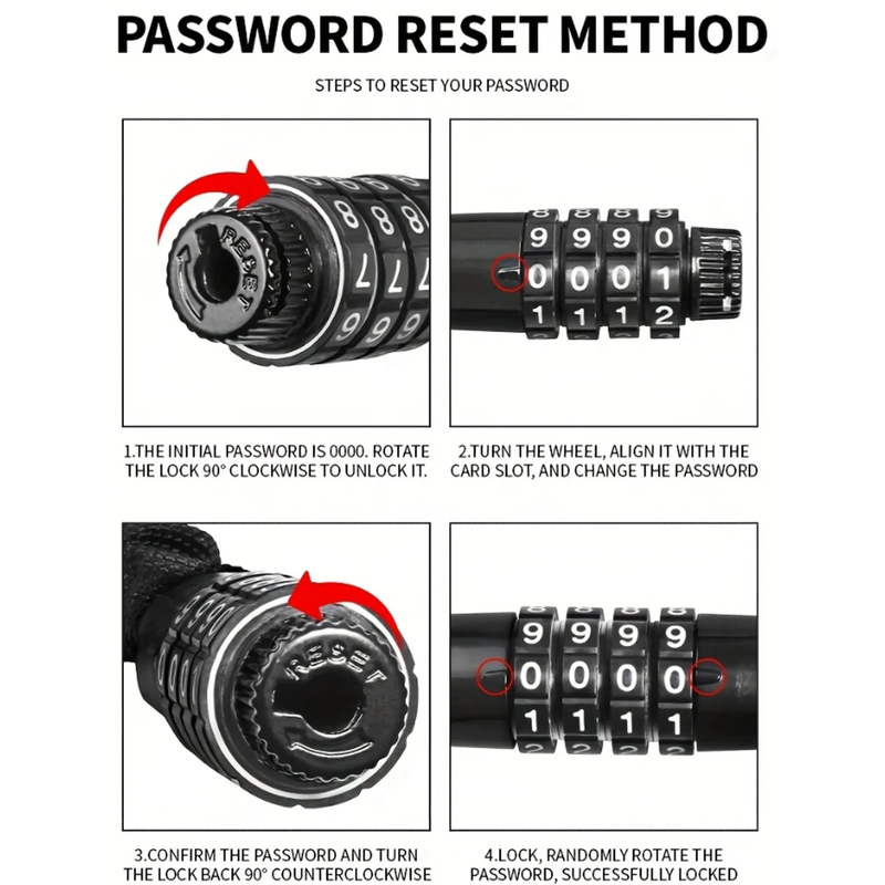 Bicycle Lock Motorcycle Chain Lock Four Digit Password Lock Safe and Portable Anti-Theft Lock Riding Equipment