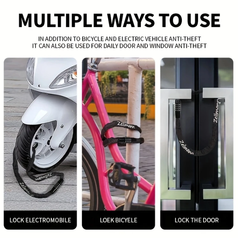 Bicycle Lock Motorcycle Chain Lock Four Digit Password Lock Safe and Portable An