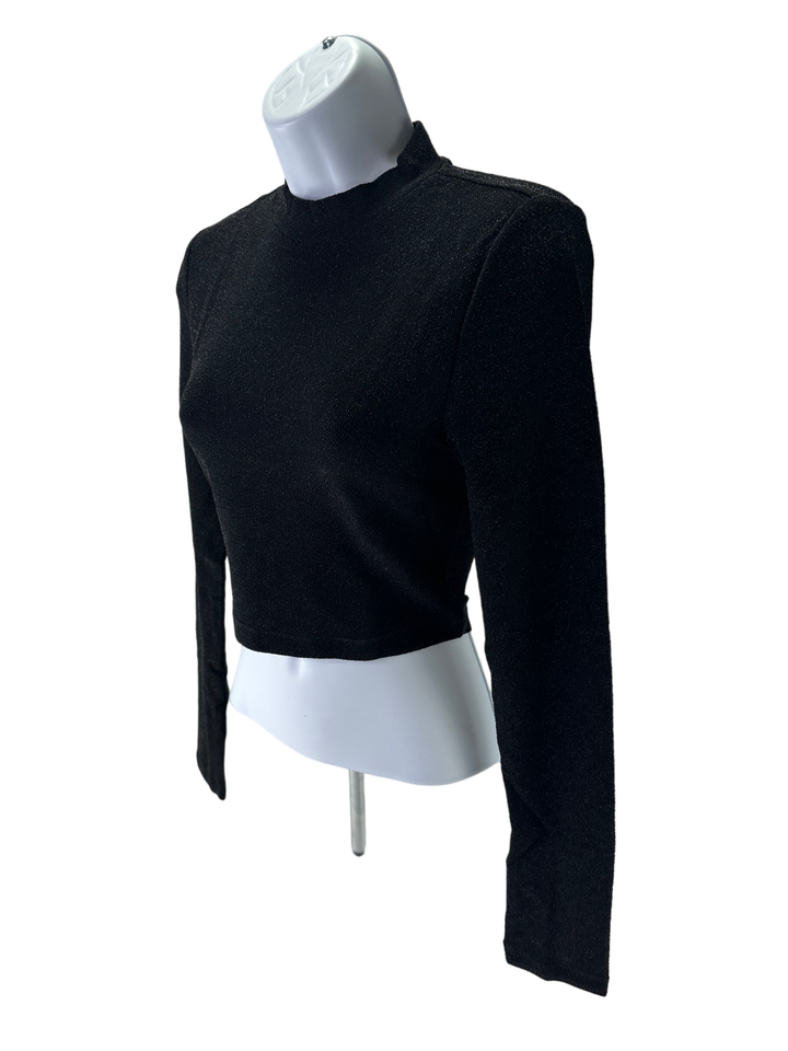 New American Apparel Metallic Glittery Black Crop Top Long Sleeve