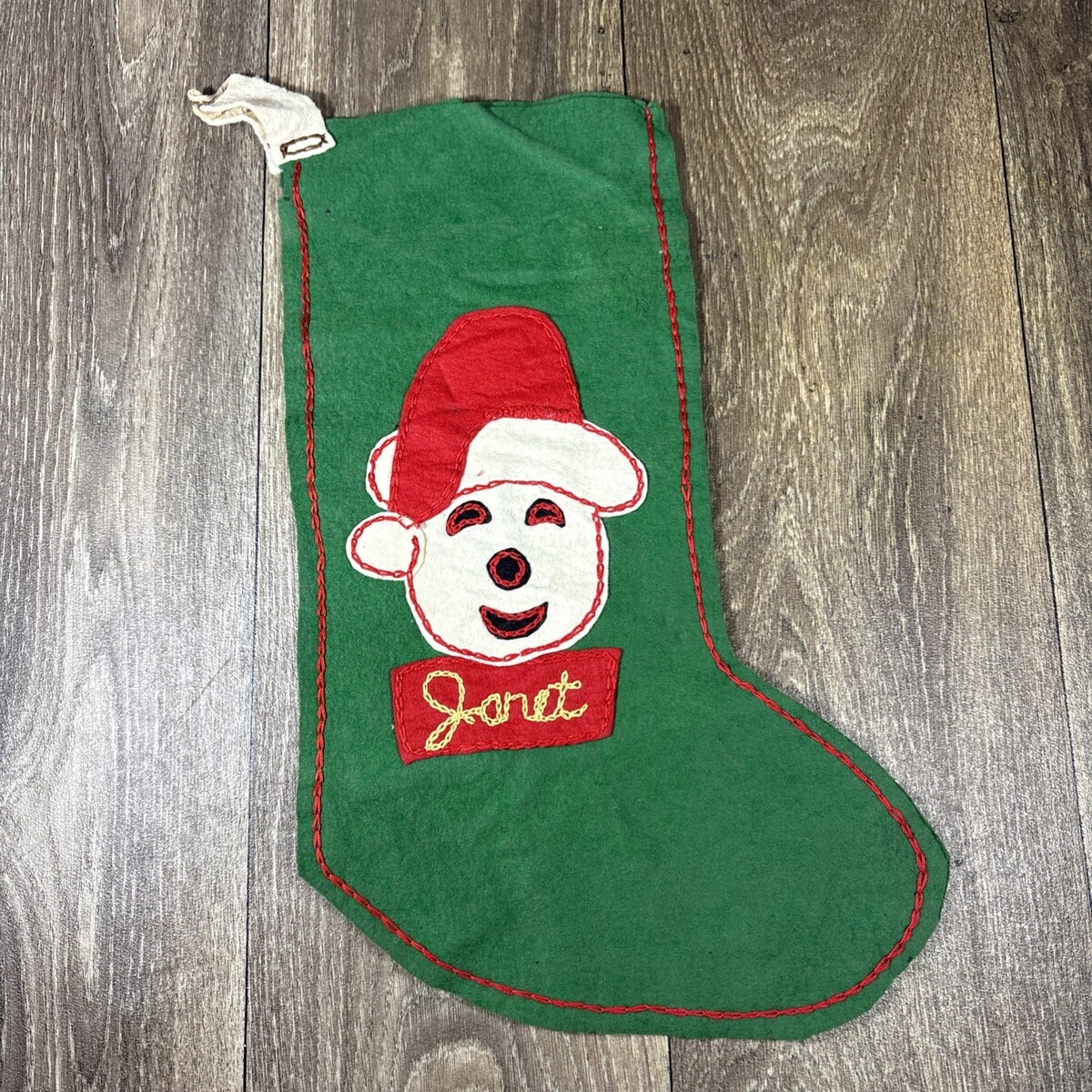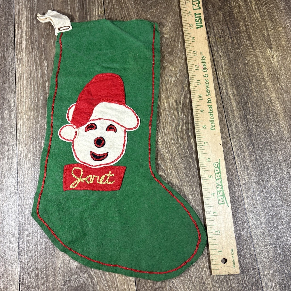 Vintage Handmade Felt Christmas Holiday Stocking JANET