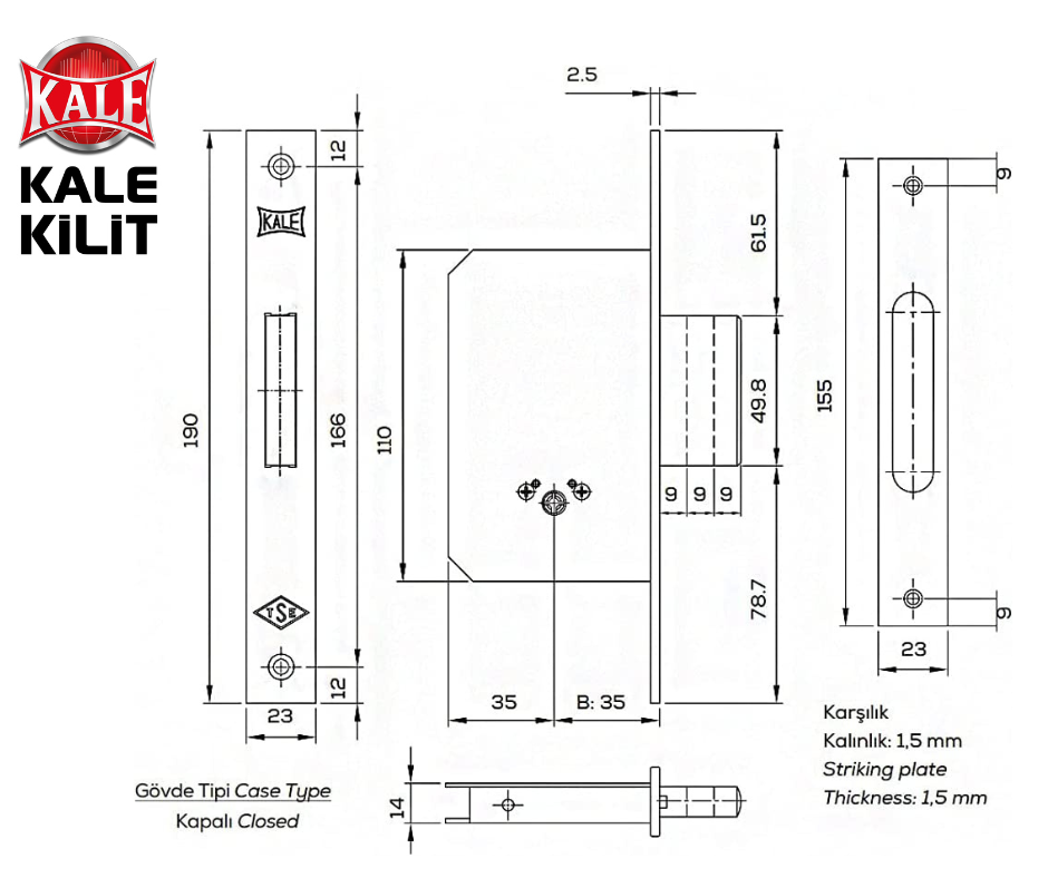 Kale Kilit 189 3MF High Security Lock for Additional Locking. with 3 Keys