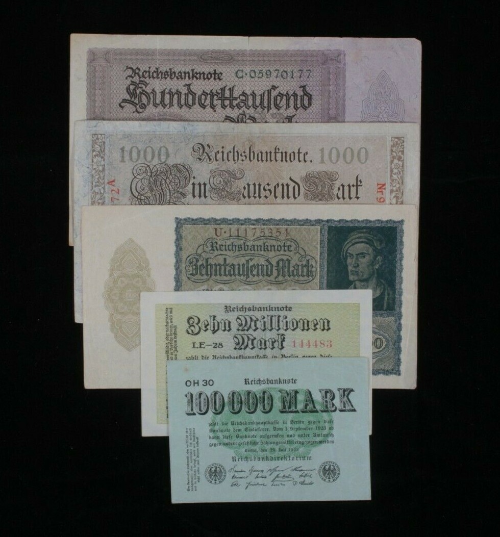 1910-1923 Germany 5-Notes // German Empire Weimar Republic // 1000-10 Million